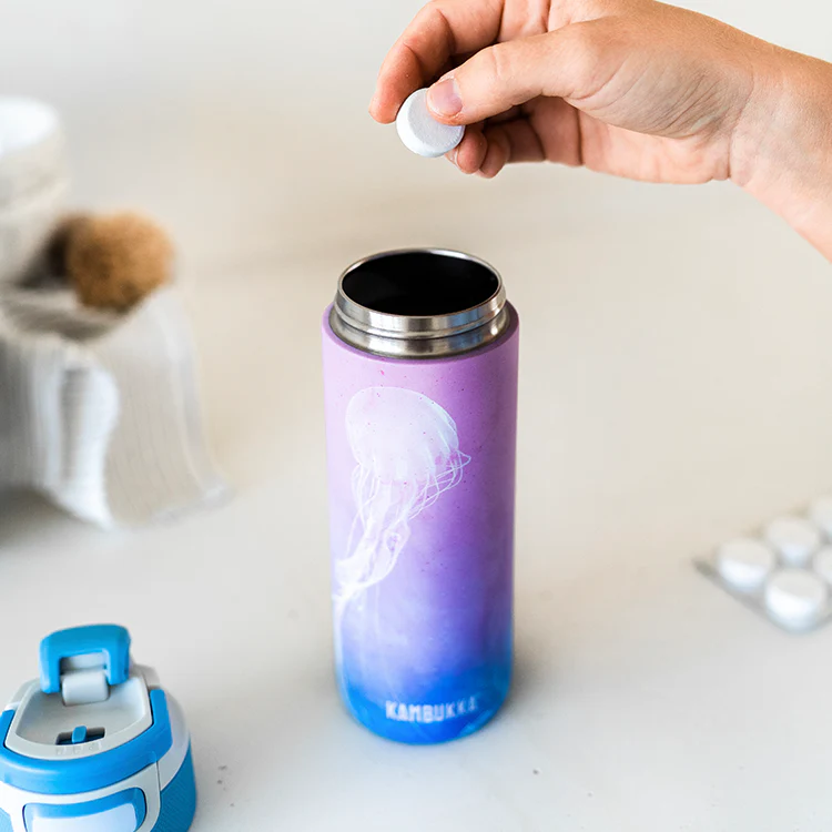 You want to keep your Kambukka bottle happy (and clean, shiny and odorless). We understand that. That is also the reason why we came up with these cleaning tablets! Fill your bottle with hot water, add a tablet and wait about thirty minutes for the magic to happen.